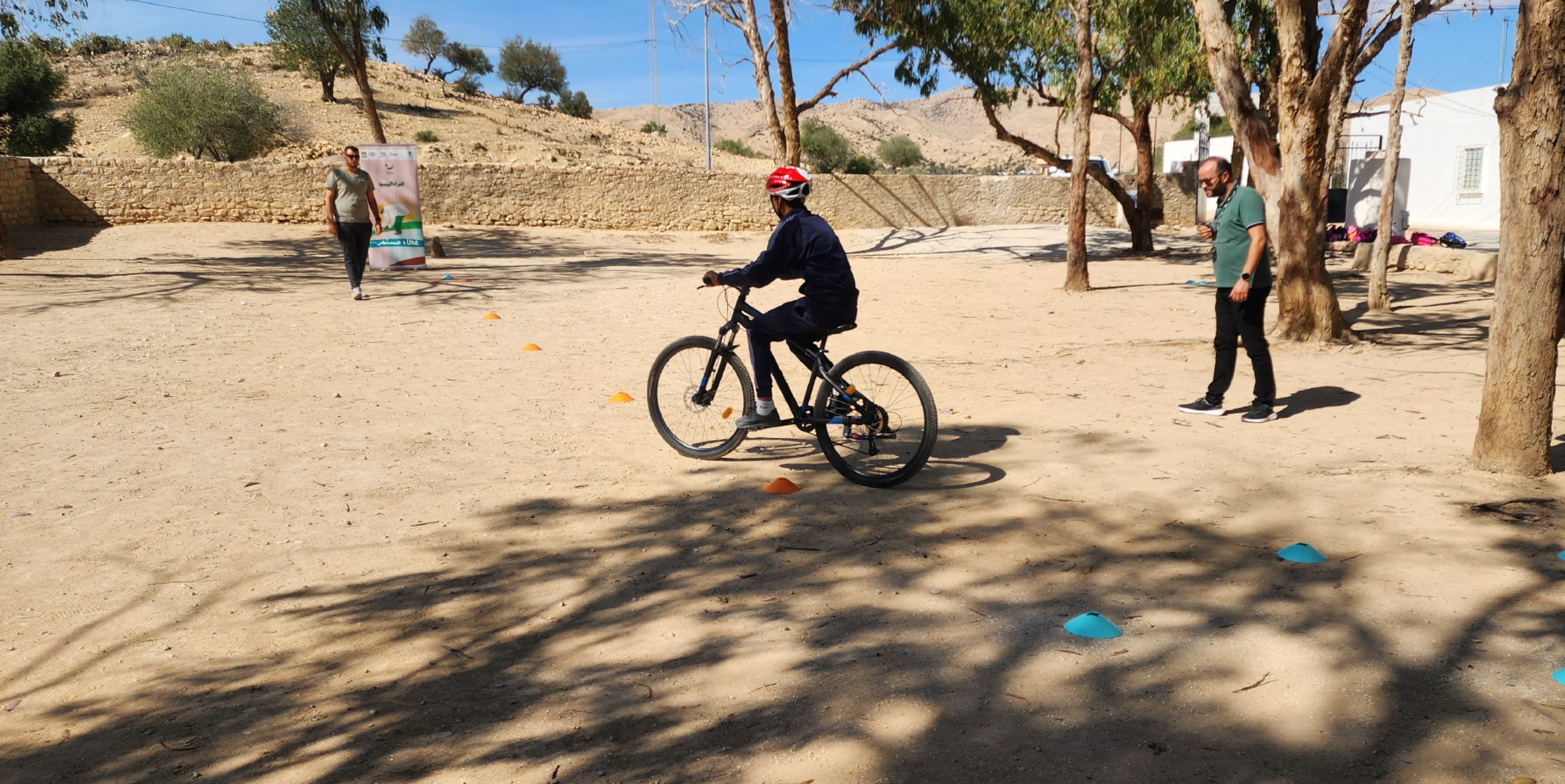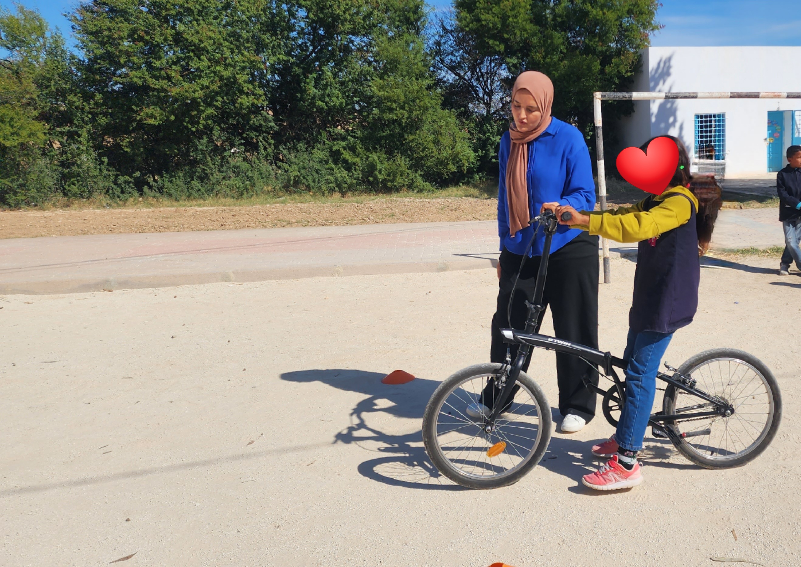 Atelier pratique d’initiation des filles à la pratique du vélo comme moyen de transport sûr et écologique, sous le slogan « Le vélo… ma liberté »