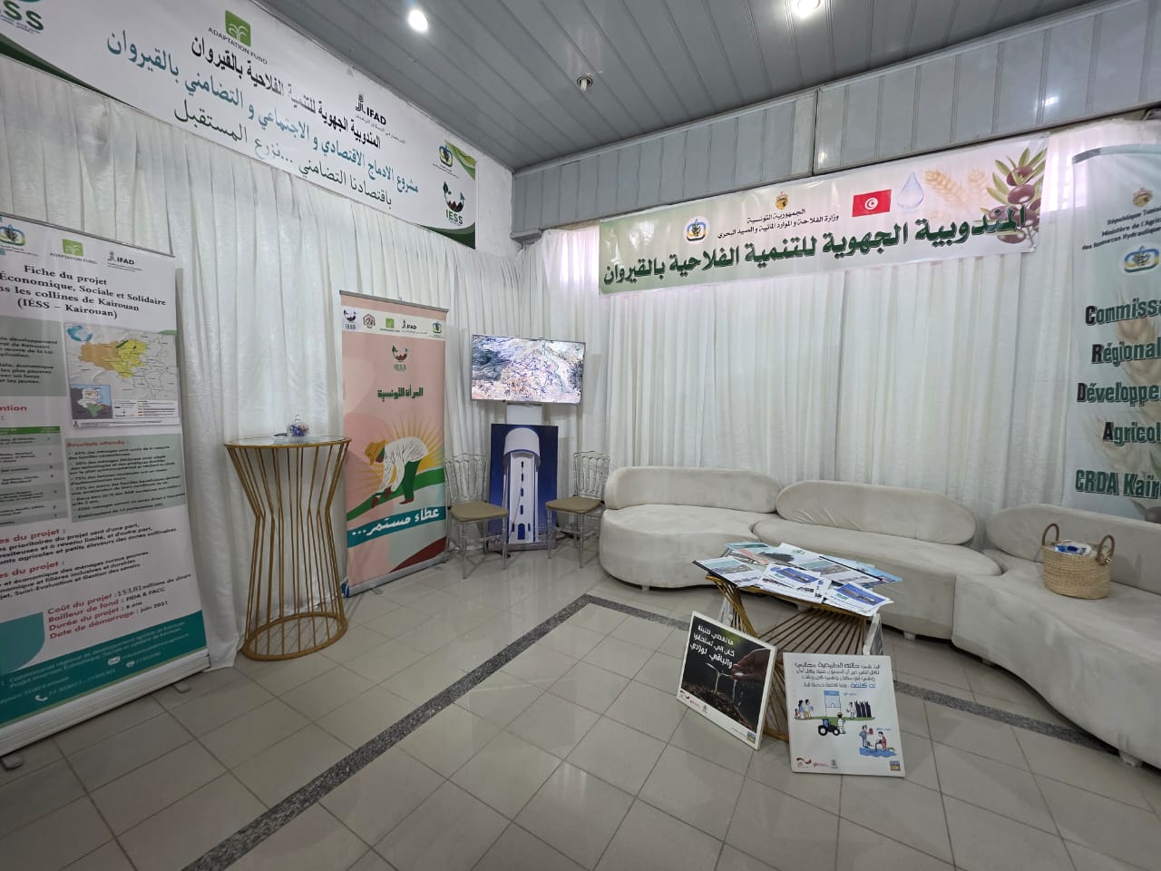 Le premier espace, intégré à celui du Commissariat Régional au Développement Agricole (CRDA) de Kairouan, est consacré à la présentation du projet, à sa promotion aux niveaux régional et national, ainsi qu’à la valorisation de ses principales réalisations et de son rôle dans le développement du secteur agricole.